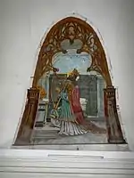 During the time of Agustin Reyes (1957–1966) the paintings were removed when the ceiling was repainted during the renovation of 1960 because some pictures had been defaced by bats and time. The two paintings on the ceiling of the choir loft or "Koro", the image of the patron saints of Christian music – Holy King David with the harp and Saint Cecilia at the piano, are the only remnants of the more than a dozen paintings.