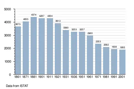 - "Superficie di Comuni Province e Regioni italiane al 9 ottobre 2011". Italian National Institute of Statistics. Retrieved 16 March 2019.