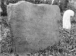 Saruaso II inscription, also previously known as Batusangkar inscription, is one of the inscriptions from the King Adityawarman era (14th century CE).[1] It is currently located at the Fort van der Capellen area, in the courtyard of the old office of the Monuments Preservation Department (BPCB, the old Balai Adat hall), in Batusangkar city, West Sumatra, Indonesia.[2] The inscription was previously displayed across in front of the Indo Jalito Building, which was the residence of the Regent of Tanah Datar during the Dutch colonial period (researcher L.C. Westenenk once lived there).[2] The inscription is written in Old Javanese script and Sanskrit language.[3]