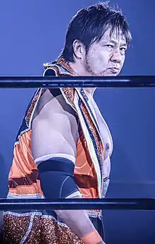 On July 3, Kojima teamed up with Matt Sydal and Ricochet to defeat The Elite (Kenny Omega and The Young Bucks (Matt Jackson and Nick Jackson)) for the NEVER Openweight 6-Man Tag Team Championship.[76] Afterwards, Kojima backed out of the 2016 G1 Climax and gave his spot to Hiroyoshi Tenzan to give his longtime tag team partner one final chance to win the tournament.[77] On August 14, Kojima unsuccessfully challenged Jay Lethal for the Ring of Honor (ROH) World Championship.[78] On September 25, Kojima, Ricochet and Sydal were stripped of the NEVER Openweight 6-Man Tag Team Championship due to Sydal failing to make a scheduled title defense at Destruction in Kobe because of travel issues.[79] That same day, Kojima and Ricochet, now teaming with David Finlay, defeated Adam Cole and The Young Bucks to regain the vacant title.[80] They lost the title to Los Ingobernables de Japón (Bushi, Evil and Sanada) in a four-team gauntlet match at Wrestle Kingdom 11 in Tokyo Dome on January 4, 2017.[81] On March 6, Tencozy defeated Tomohiro Ishii and Toru Yano to win the IWGP Tag Team Championship for the sixth time.[82] They lost the title to War Machine (Hanson and Raymond Rowe) on April 9 at Sakura Genesis 2017.[83]