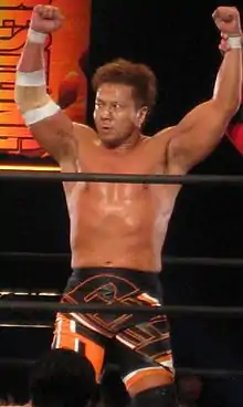 Satoshi Kojima (小島 聡, Kojima Satoshi, born September 14, 1970) is a Japanese professional wrestler.[1] He is currently signed to New Japan Pro-Wrestling, but he makes appearances for Pro Wrestling Noah and All Japan Pro Wrestling. Considered to be one of the greatest Japanese professional wrestlers of the 21st century and of all-time, he was the first wrestler to hold NJPW's IWGP Heavyweight Championship and AJPW's Triple Crown Championship simultaneously, the fourth to win the three major heavyweight championships in Japan with the Triple Crown Heavyweight, IWGP Heavyweight, and Noah's GHC Heavyweight Championship, and one of three wrestlers to hold the IWGP Heavyweight Championship, Triple Crown Championship, and NWA Worlds Heavyweight Championship (the other two being Keiji Mutoh and Shinya Hashimoto), and is an overall seven-time world champion in major professional wrestling promotions.