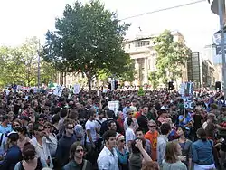 A social networking group was created in opposition to the closure of the venue and on the evening of 14 January 2010, a rally was organised to protest at the venue.[1] On 17 January 2010, a crowd of between 2,000 and 5,000 rallied outside the venue. At the time of the protest outside of the Tote, Christopher Morris, a majority shareholder in the group that owns the building that housed the Tote, explained in regard to the legislative attempt to prevent violence: "Sometimes the cost of security would be more than they'd actually take over the bar."[2]