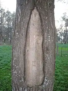 The Bangerang people used the River Murray as a thoroughfare and were famous for their bark canoes: the banks of the Murray today still have a relatively large number of older trees with the wood exposed where bark for canoes was cut out in the early nineteenth century or before [scar trees]. As late as 1848 the squatter E. M. Curr travelled on the river with an Aboriginal guide in a 6-metre-long (20 ft) canoe with a traditional fire "burning on a hearth of clay in the bows" to grill fish or duck en route.[1][2]