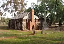 - 1876 - Selector's Hut: is an example of wattle and daub pioneering architecture, with the use of interlinked horizontal cypress pine logs, the gaps being filled with mud. Considered significant.[1]