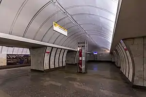 Savyolovskaya (Russian: Савёловская), alternatively transliterated Savelovskaya, is a station on Serpukhovsko-Timiryazevskaya Line of the Moscow Metro. It is in the Butyrsky District of Moscow and has a depth of 52 metres (171 ft). It opened on 31 December 1988 and was the northern terminus of the line until an extension in 1991 pushed the terminus out to Otradnoye.