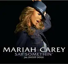 "Say Somethin'" is a song by American singer and songwriter Mariah Carey. It was written by Carey, Snoop Dogg, Chad Hugo, and Pharrell Williams, and produced by The Neptunes as the sixth and final single from Carey's tenth studio album, The Emancipation of Mimi (2005). The song is one of few from Carey's catalog in which she does not share production credits. "Say Somethin'" features Dogg as a guest artist, and is influenced by R&B and hip-hop music genres. Lyrically, the song is a dialogue in between and male and female, that discuss sexual themes and acts of which they plan to engage in a restroom.