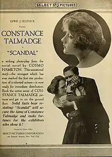 Scandal is a 1917 American black and white silent comedy drama film directed by Charles Giblyn and based on a novel by Cosmo Hamilton.[1] The film scenario is written by Bess Meredyth.[2] It is one of the first films to star Constance Talmadge.[3][4]