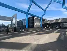 Since September 2023, Durham Region Transit (DRT) route 920 buses serve the TTC Scarborough Centre bus terminal. Due to the TTC bus terminal being situated inside the TTC's fare-paid area, and separate fares required for customers transferring between DRT and TTC, passengers heading towards Durham Region board the DRT buses inside the TTC bus terminal, while those heading towards Scarboough Centre alight at nearby on-street stops outside of the station. The DRT buses previously terminated at McCowan station.[13][14]