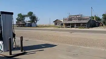 In July 2011, the 12-acre (4.9 ha) town and surrounding area—about 46 acres (19 ha) total—was listed for sale at $799,000. The sale included the post office (ZIP code 57780), Longhorn Saloon, a dance hall, bunkhouse, museum, and two stores.[3][6][7] It also included a train depot[7] that is on an abandoned line that was part of the Chicago, Milwaukee, St. Paul and Pacific Railroad and is the subject of a 104-mile (167 km) rails-to-trail project between Rapid City and Kadoka.[8]