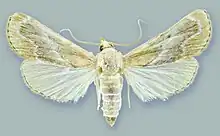 The length of the forewings is 7–11 mm. The basal, antemedial, and subterminal fasciae of the forewings are brownish orange. The hindwings are yellowed at the margin.[1] Adults have been recorded on wing in mid-June (in Mexico), from January to June (in Costa Rica), from March to April (in Nicaragua), from April to May (in Venezuela) and in December (in Bolivia).
