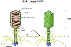 Genomes are linear.[2] All three species have been fully sequenced. They range between 244k and 248k nucleotides, with 381 to 405 proteins. The complete genomes are available from National Center for Biotechnology Information (NCBI), along with the complete genome for Vibrio phage VH7D, an unclassified virus strain.[3]