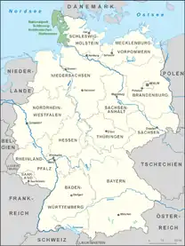 The national park covers an area from the North Sea coast of Schleswig-Holstein by the Danish border in the north to the Elbe estuary in the south. In the northern area (roughly as far as Amrum), the national park boundary extends to the twelve mile territorial limit; to the south it reaches to about the three mile line. On the land side it runs in the sea 150 metres off the coast.[3] Sea dykes and the foreland immediately in front of the dykes are not part of the national park; beaches are thus largely excluded from the protected zone.[4] Also excluded from the national park are the inhabited areas in the sea, including the five German North Frisian Islands and the larger Halligen islands of Langeness, Hooge, Gröde, Oland and Nordstrandischmoor. Part of the park comprises uninhabited islands, islets and Halligen, such as Trischen, Blauort or the North Frisian Barrier Island. Under the classification of the natural regions of Germany the national park area belongs to the "Schleswig-Holstein Wadden Sea, Islands and Halligen" region[5] within the Schleswig-Holstein Marshes, and to the major unit of the German Bight.