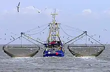 The national park has 70 neighbouring communities in Schleswig-Holstein with 290.000 people living there. Additionally approximately 15 Million people visit the national park every year.[43] The area of the Wadden Sea National Park is harnessed by tourism, fishery, oil production, coastal defence, grazing, maritime traffic and air traffic, withdrawal of gravel and sand, mussel cultivation and sometimes used for military weapon testing. Most of the utilisation is located directly near or at the coast, so the seaward area is more or less unaffected by human influences.[3] Since the amendment of the second national park law in 1999 mainly voluntary agreements coordinate the limitation in human utilisation of the Wadden Sea. The consideration of traditional usages highly increased the approval of the national park by locals.[44] Since 1987 utilisations, which hardly affect the ecosystem Wadden Sea at all, are allowed again by law. Such utilisations are e.g. collecting small amounts of plants for science or education.[13]