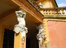 Schloss Favorite was built from 1717 to 1723 for the sovereign Duke of Württemberg, Eberhard Ludwig, to a design by Donato Giuseppe Frisoni. The model was the Gartenpalais in Vienna.[1] The original plan provided for combining the functions of a hunting castle, surrounded by a vast park and hunting grounds, and a country villa with a beautiful view. In 1748, it served as a backdrop for a grandiose firework display arranged on the occasion of the wedding of Charles Eugene, Duke of Württemberg, and Princess Margravine Elisabeth Fredericka Sophie of Brandenburg-Bayreuth.