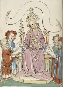 The Schwabenspiegel is a legal code, written in ca. 1275 by a Franciscan friar in Augsburg. It deals mainly with questions of land ownership and fiefdom, and it is based on the Pentateuch, Roman law as well as Canon law. Written in Middle High German,[1] it draws on the early 13th century Sachsenspiegel, and is immediately dependent on the Deutschenspiegel code.