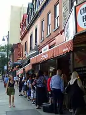 While the small size of Schwartz's restaurant has led to long lineups, the owners have preferred to remain since their historic establishment has proved an attraction to longtime customers and tourists, similar to Bens and Main who also refused to move, while Dunn's relocation proved controversial among its customer base since the new restaurant lacked the nostalgia of the original spot despite being larger. In the fall of 2008, Schwartz's opened a take-out location next door.[25]