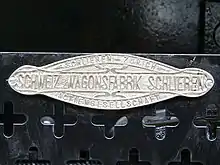 The company was founded in 1895 as Firma Geissberger & Cie., which opened a wagon factory at Schlieren railway station.[1] In 1899, the company became Schweizerische Wagen- und Wagons-Fabrik AG, based in Zürich. Just one year later, the company moved its base back to Schlieren, and in 1901, there was another renaming, to Schweizerische Wagons-Fabrik AG in Schlieren-Zürich (SWS).
