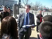 Brown was among the speakers at the Conservative Political Action Conference (CPAC) in Washington, D.C., introducing former Massachusetts governor Mitt Romney.[91] Despite his appearance at CPAC, where he alluded to his election as making "big government spenders ... [not] feel good at all", Brown refused to rule out a vote for a Democratic "jobs bill" proposal, and praised both Senate Majority Leader Harry Reid of Nevada and then-senior Senator John Kerry of Massachusetts for indicating their willingness to work with him across party lines.[92] Brown was one of five Republican senators to vote for cloture on the jobs bill. The motion passed in the Senate 62–30 on February 22, 2010.[93] In an up or down vote on the bill itself on February 24, 2010, Brown voted for final passage, helping to pass the bill 70–28.[94]
