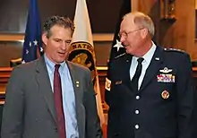 He was awarded the Army Commendation Medal for meritorious service in preparing for troops mobilization for Operation Noble Eagle (the mobilization of National Guard and U.S. Army Reserve personnel to provide security on military installations, airports, and other potential homeland targets) shortly after the September 11, 2001 attacks, and later for mobilization support for Operation Enduring Freedom and Operation Iraqi Freedom of the Iraq War.[22][27] He credits his military experience with causing him to focus on veteran's issues as well as issues of war and peace.[26] He has served on the Senate Committee on Veterans' Affairs, the Hidden Wounds of War Commission, and the Governor's Task Force on Returning Veterans during his career as a legislator.[26]