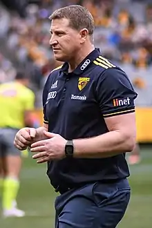 He was an assistant coach of the West Coast Eagles from 2008 to 2013. On 8 October 2013, after missing out on the West Coast Eagles head coach job to Adam Simpson he accepted an offer to return to Collingwood as an assistant coach under head coach Nathan Buckley. After four years as Collingwood's midfield coach, Burns accepted an assistant coach position at Hawthorn.[3] After serving as Hawthorn's midfield coach for the 2018 AFL season, Burns served as Hawthorn's forwards coach for the 2019 AFL season.[4] On 23 September 2020 It was announced that Burns would take on the role of Senior Assistant Coach for the Adelaide Football Club.[5]
