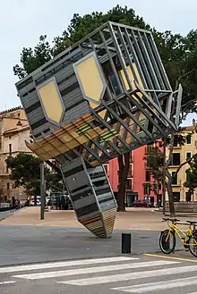 Glass may be used for sculpture through a wide range of working techniques, though the use of it for large works is a recent development. It can be carved, though with considerable difficulty; the Roman Lycurgus Cup is all but unique.[11] There are various ways of moulding glass: hot casting can be done by ladling molten glass into moulds that have been created by pressing shapes into sand, carved graphite or detailed plaster/silica moulds. Kiln casting glass involves heating chunks of glass in a kiln until they are liquid and flow into a waiting mould below it in the kiln. Hot glass can also be blown and/or hot sculpted with hand tools either as a solid mass or as part of a blown object. More recent techniques involve chiseling and bonding plate glass with polymer silicates and UV light.[12]
