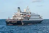 The two ships have been said to offer "... clubby scale, [and a] sense of privacy and exclusivity ...", but with lodgings not as luxurious as those of Seabourn or Silversea vessels. Each is equipped with a watersports marina that can be lowered for activities such as swimming, snorkelling, kayaking, windsurfing, and waterskiing.[4] Both ships are stocked with complimentary equipment for waterborne activities, including wave runners, glass-bottom kayaks, Laser sailboats, a banana boat, water skis, snorkeling gear and standup paddleboards. Also available are mountain bikes for use ashore.[2]