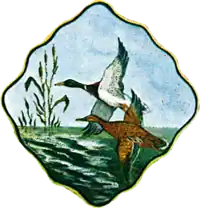 On June 11, 1968, the county's Board of County Commissioners, now known as the County Council, adopted a new seal. The county's sheriff during the 1980s reportedly stated that it was designed by a high school sophomore in 1961.[1] The seal is lozenge-shaped and features in the center, two mallard ducks in flight over a shoreline.[3][4]
