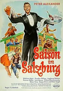 Season in Salzburg (German: Saison in Salzburg) is a 1961 Austrian musical comedy film directed by Franz Josef Gottlieb and starring Peter Alexander, Waltraut Haas, and Gunther Philipp.[1] It is based on the operetta Saison in Salzburg by Fred Raymond, Kurt Feltz, and Max Wallner.