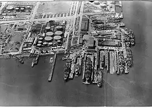 The "Plant A" destroyer facility produced a single civilian ship, the luxury ferry Chinook, launched in 1947,[12] but by 1952 oil terminals had been established in the spot.[13]