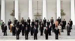 The Second United Indonesia Cabinet (Indonesian: Kabinet Indonesia Bersatu II) was inaugurated on 22 October 2009, two days after the inauguration of Susilo Bambang Yudhoyono as President of Indonesia for the second term. The cabinet consists of members from Yudhoyono's Democratic Party and its coalition partners (the Prosperous Justice Party, the National Mandate Party, the United Development Party, National Awakening Party and the Golkar Party) as well as non-party figures.[1][2]