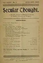 Secular Thought (1887–1911) was a Canadian periodical, published in Toronto, dedicated to promoting the principles of freethought and secularism. Founded and edited during its first several years by English freethinker Charles Watts, the editorship was assumed by Toronto printer and publisher James Spencer Ellis in 1891 when Watts returned to England. During that period, Secular Thought was the principal organ of the freethought movement in Canada, publishing large amounts of material from England and the United States in addition to commenting on Canadian affairs.[1]