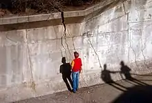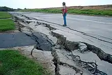 Seismic loading means application of an earthquake-generated excitation on a structure (or geo-structure). It happens at contact surfaces of a structure either with the ground,[5] with adjacent structures,[6] or with gravity waves from tsunami. The loading that is expected at a given location on the Earth's surface is estimated by engineering seismology. It is related to the seismic hazard of the location.