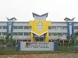 Sekolah HighScope Indonesia is a national-plus school based in Jakarta, Indonesia, established in 1996. The director is Antarina S.F. Amir.[1] The school is based on the HighScope Research Foundation Development curriculum, of which the institute itself is located in Ypsilanti, Michigan.[2] Sekolah HighScope Indonesia's first location is in Pondok Indah, South Jakarta. At first, the school only included the early childhood program, and during its first days of operation, HighScope Indonesia only had 8 students. A second campus is located on the Aston Jakarta hotel, located somewhere in Kuningan, South Jakarta. A third campus, now closed, had previously occupied a house that was only a walk away from Pondok Indah Mall. In 2000, HighScope Indonesia opened the Elementary program, which was previously located in a house in Cilandak, South Jakarta. They started with only one classroom, which doubled to three classrooms prior to moving to a new campus in Jl. TB Simatupang, West Cilandak, Jakarta Selatan, Daerah Khusus Ibukota Jakarta, in June 2002. In 2005, the Middle School program was opened, allowing 5th grade students to promote to 6th grade, without even having to leave the school. The latest was the High School program, located on the 5th floor on the second building of the campus.
