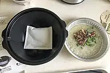 Self-heating rice with quicklime and water as heating source, taken before adding water to quicklime