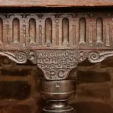 Laurence Cadbury was George Cadbury's fourth son, and the collection at Selly Manor is a testament to his interest in collecting fascinating items. Laurence began collecting objects whilst studying at Cambridge in about 1908 and continued well into the mid-1930s.[7] Much of his collection was displayed at his house, The Davids in Northfield, Birmingham, but Selly Manor was a perfect home for the 16th and 17th century furniture and domestic objects he loved so much. From sturdy oak chests and intricate carvings to a beautiful tapestry and unusual utensils, there is so much to appreciate. The highlight of the collection is an 18-foot table dating from the 1630s which was originally from the now demolished Crooke Hall in Lancashire.[7]