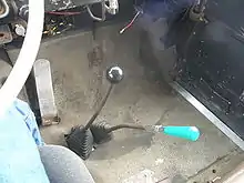 Another difference between semi-trucks and cars is the way the clutch is set up. On an automobile, the clutch pedal is depressed full stroke to the floor for every gear shift, to ensure the gearbox is disengaged from the engine. On a semi-truck with constant-mesh transmission (non-synchronized), such as by the Eaton Roadranger series, not only is double-clutching required, but a clutch brake is required as well. The clutch brake stops the rotation of the gears and allows the truck to be put into gear without grinding when stationary. The clutch is pressed to the floor only to allow a smooth engagement of low gears when starting from a full stop; when the truck is moving, the clutch pedal is pressed only far enough to break torque for gear changes.