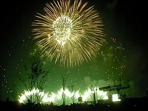 About 100,000 fireworks went off, and more than a million of viewers visited every year.[4] Seoul International Fireworks Festival is the typical festival in Korea. There are about 20,000 visitors at main event hall at Yeoido.[5] Moreover, there are about 100,000 visitors near Wonhyo Bridge, Hangang Bridge, Hangang Park Ichon Area and more places. In total, about 120,000 visitors enjoyed the festival.[6][7][8]
