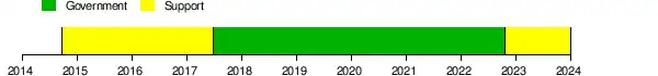 | Year | Leader | Popular vote | % of popular vote | # | # of seats | Seat change | Coalition | Status |