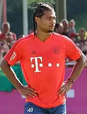 Serge David Gnabry (German pronunciation: [sɛʁʃ ˈdaːvɪt gnabʁi];[4][5] born 14 July 1995) is a German professional footballer who plays as a forward for the Bundesliga club Bayern Munich and the Germany national team.