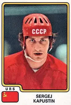 Sergei Alekseevich Kapustin (Russian: Сергей Алексеевич Капустин) (13 February 1953 in Ukhta, Russian SFSR, Soviet Union – 4 June 1995) was an ice hockey player who played in the Soviet Hockey League. He played for HC CSKA Moscow, Krylya Sovetov Moscow, and HC Spartak Moscow.