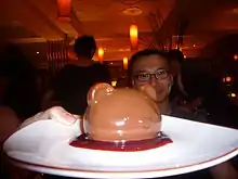 Bring me the head of… (2007–2015) is the edible form of a teddy bear's head on a plate. Instead of working with museums or galleries, in this series, Özkaya collaborated with restaurants and chefs and they decided the ingredients—that is the material of the sculpture. This work was made in collaboration with M on the Bund in Shanghai,[26] offered at Freemans' Restaurant in New York in 2007 as a part of the Performa Biennial,[27][28] at Changa in Istanbul in 2008, as street food in Izmir in 2009, at Capital M in Beijing in 2012,[29] and at the Hive in Bentonville, Arkansas in 2014.