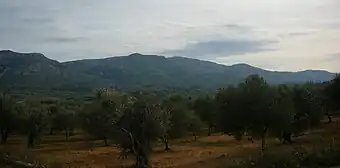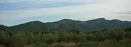 Its highest summit is Tossal d'en Canes (715 m),[2] being slightly higher than neighboring Talaies d'Alcalà's highest summit. Another important peak is 520 m high El Cavall.