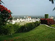 The mansion was built on the south side of Cerro del Vigía (Del Vigía hill), which is the most prominent and nearest hill to the Ponce Historic Zone. Its location has the mansion overlooking the city of Ponce. Cerro del Vigía is the name of one of the hills to the north of the city of Ponce that make up the foothills of the Cordillera Central found further inland. The location of the mansion, together with its magnificent landscape, and many architectural details, have made it unique among other Puerto Rico mansions. Its location atop the Cerro del Vigía hill makes it visible from nearly every part of the city of Ponce, "as a constant reminder to all Ponceños of their heritage".[1] The building's location, coupled with its "Y" shape form, allows for an impressive and breath-taking view of the city of Ponce from any one of its eastern, southern, or western elevations.