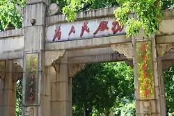 It is inscribed on the screen wall facing the front entrance of the Zhongnanhai compound, which houses the headquarters of the Central People's Government and the CCP.