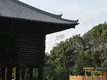 The Shōsō-in (正倉院) is the treasure house of Tōdai-ji Temple in Nara, Japan.[1][2] The building is in the azekura (log-cabin) style with a raised floor. It lies to the northwest of the Great Buddha Hall. The Shōsō-in houses artifacts connected to Emperor Shōmu (聖武天皇)(701–756) and Empress Kōmyō (光明皇后)(701–760), as well as arts and crafts of the Tempyō (天平) era of Japanese history.