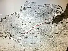 Lung Yeuk Tau station was likely to have closed before the branch ceased operation.[2] The location of Wo Hang station and Shek Chung Au station, which the papers described as near to the police station, were confirmed by villagers,[7][10] whilst both termini can be seen in aerial photos taken in 1924.[11] Che Ping Street (Chinese: 車坪街; lit. 'Car Flatland Street') in Sha Tau Kok is named after the terminus.[2]