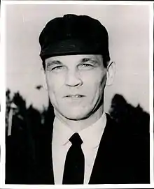 Crawford was the third base umpire for Sandy Koufax's third no-hitter on June 4, 1964. He was the home plate umpire when one of the most violent brawls in baseball history occurred during a game between the Los Angeles Dodgers and the San Francisco Giants at Candlestick Park on August 22, 1965.[7][8] The incident occurred between Giants pitcher Juan Marichal and Dodgers catcher John Roseboro in the aftermath of the Watts riots near Roseboro's Los Angeles home and while the Dominican Civil War raged in Marichal's home country so emotions were raw.[9] The Dodgers' Maury Wills led off the game with a bunt single off Giants pitcher Marichal and eventually scored a run.[10] Marichal, a fierce competitor, viewed the bunt as a cheap way to get on base and took umbrage with Wills.[8][9] When Wills came up to bat in the second inning, Marichal threw a pitch directly at Wills sending him sprawling to the ground.[8] Willie Mays then led off the bottom of the second inning for the Giants and Dodgers' pitcher Sandy Koufax threw a pitch over Mays' head as a token form of retaliation.[8][9] In the top of the third inning with two outs, Marichal threw a fastball that came close to hitting Ron Fairly, prompting him to dive to the ground.[9] Marichal's act angered the Dodgers sitting in the dugout and, Crawford then warned both teams that any further retaliations would not be tolerated.[9] When Marichal came to bat in the third inning, he was expecting Koufax to take further retaliation against him but instead, he was startled when Roseboro's return throw to Koufax after the second pitch either brushed his ear or came close enough for him to feel the breeze off the ball.[11] When Marichal confronted Roseboro about the closeness of his throw, Roseboro came out of his crouch with his fists clenched.[11] Marichal stated afterwards that he thought Roseboro was about to attack him and raised his bat, striking Roseboro at least twice over the head with his bat, opening a two-inch gash that sent blood flowing down the catcher's face that required 14 stitches.[11] Koufax ran in from the mound to attempt to separate them and was joined by the umpires, players and coaches from both teams.[11] Crawford attempted to step between the two players in an effort to defuse the situation.[9] When Marichal stumbled, Crawford saw his opportunity and wrapped both of his arms around Marichal and the two men fell to the ground.[9] A 14-minute brawl ensued on the field before Koufax, Giants captain Willie Mays and other peacemakers restored order.[8] Crawford ejected Marichal from the game and afterwards, National League president Warren Giles suspended Marichal for eight games (two starts), fined him a then-NL record US$1,750[7][12] (equivalent to $16,251 in 2022),[13] and also forbade him from traveling to Dodger Stadium for the final, crucial two-game series of the season.[11] Roseboro filed a $110,000 damage suit against Marichal one week after the incident but, eventually settled out of court for $7,500.[11]