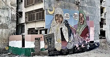 Similar protests were held at Kanpur's Chaman Ganj, Gaya's Shanti Bagh,[13][180] Kota's Eidgah ground,[181] Lucknow's Clock Tower[182] and Fraser Town in Bangalore.[183] Inspired by the Shaheen Bagh protest, a large anti-CAA-NRC-NPR protest started in Mumbai on 17 January. Around 10,000 women gathered in the evening at the YMCA ground in Agripada, Mumbai to protest. The protest was organised by NGO collective Mumbai Citizen Quorum.[184][185][186] On 20 January, an indefinite sit-in protest started at Parbhani, called "Parbhani bhi ek Shaheen Bagh", which was organised by Samvidhan Bachao Tahrik.[187][188] Protests were also held in Bilal Bagh, Bangalore, Karnataka;[189] Nagpada, Mumbai, Maharashtra;[190][191] Anaj Mandi, Malerkotla, Punjab;[192] Haj House, Ranchi, Jharkhand;[193][194][195] Idgah ground, Deoband, Uttar Pradesh;[196] Old Washermanpet, Chennai, Tamil Nadu;[197][198] and Jaffrabad, Delhi.[199]