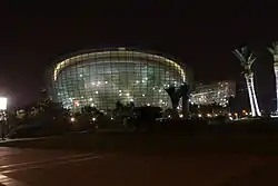 The Shanghai Oriental Art Center (simplified Chinese: 上海东方艺术中心; traditional Chinese: 上海東方藝術中心; pinyin: Shànghǎi Dōngfāng Yìshù Zhōngxīn), abbreviated SHOAC, is one of the leading performance and cultural facilities in Shanghai. The five interconnected hemispherical halls or "petals" are shaped to resemble a butterfly orchid from above.[1] They comprise the Entrance Hall, the Concert Hall, the Opera Hall, the Performance Hall, and the Exhibition Hall. The high-tech ceiling changes color during the night to reflect the nature of the performances inside. Located off Century Avenue in Pudong, the SHOAC was opened with a New Year's Eve concert in 2004 and officially opened on July 1, 2005.