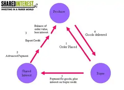 International trade and production involves long processes which take much time. For example, many months elapse between the sowing of a crop in the tropics and the final purchase by a consumer of a finished product in a European supermarket. The money laid out at each stage of production and distribution is called working capital. For smaller producer organisations to access international markets on terms consistent with their independence, if at all, requires access to working capital, by both producers and fair trade distributors, beyond what is available from banks. Normally this extra working capital would come from profit-maximising shareholders in some form or from accumulated past profits. Shared Interest provides unsecured finance, similar to trade credit. Shared Interest can do this only because its own members are prepared to accept the risk of loss on their investment in Shared Interest, and to accept the limited and currently lower financial returns resulting from the high costs of dealing with emerging organisations in the Global South.[7]